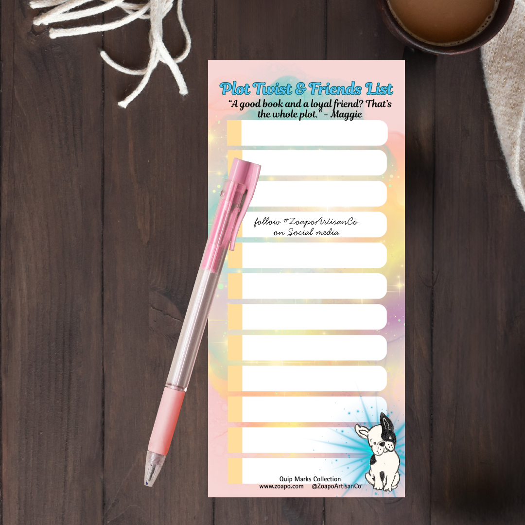 Plot Twist & Friends List — a specialty pad for goals, notes, or your favorite companions