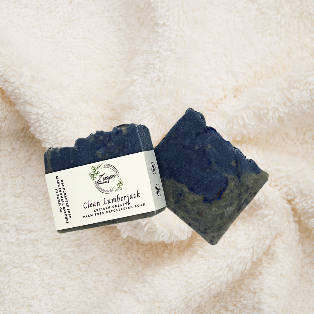 This soap features a scent that has underlying notes of woods, evergreens and mint. Our palm free soap base has colloidal oatmeal and activated charcoal added to it which gives you a smooth and cleansing shower.