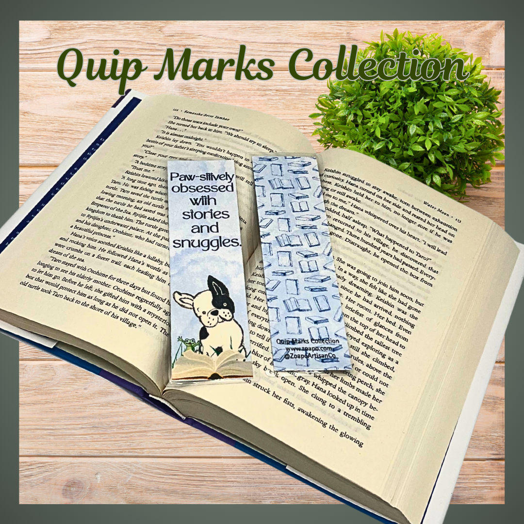 Quip Marks™ by Zoapo are printed on high-quality recycled cardstock, featuring original characters and gentle, heartfelt quotes that wrap you in comfort. Curated by Maggie — the heart of the pack who guards your pages like treasure — this collection is for readers who value warmth, kindness, and a little quiet companionship while they dive into their favorite books.