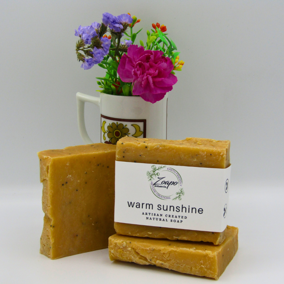 A wonderful day in the sun can be the perfect way to to give yourself some self care. We used that feeling to inspire us with this soap that has a gentle exfoliant from poppy seeds and the scent provides a warm. delicate fruity experience.