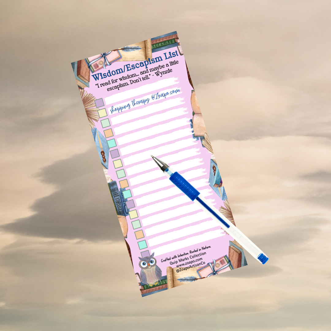 Wisdom & Escapism List — a specialty pad for goals, favorite passages, or small joys